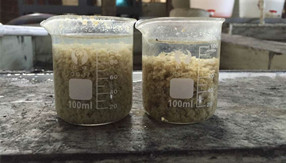綠森環(huán)保技術(shù)團隊?wèi)?yīng)某化妝品客戶要求上門技術(shù)服務(wù),現(xiàn)場給客戶廢水破乳劑中試。客戶廢水:沐浴露廢水,特點:含有乳化劑、增稠劑、抗氧化劑、防腐殺菌劑和香精色素等,廢水顏色:淺黃色。使用破乳劑破乳后廢水上清液清澈透明,如下圖       &nbs···